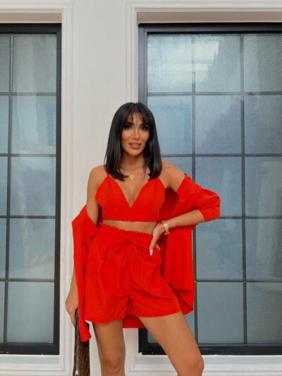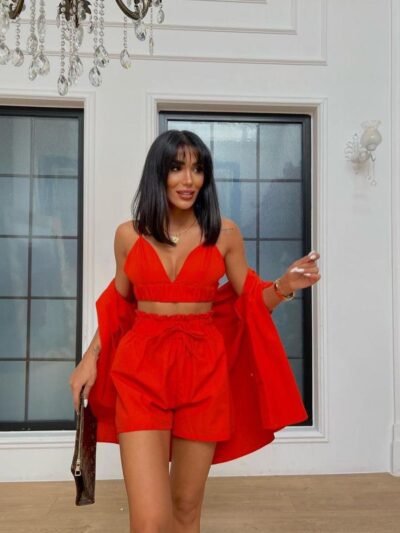 חליפת וסט שני חלקים הכוללת וסט ומכנסיים קצרים