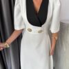 שמלת מקסי דו-טון מחויטת עם כפתורי זהב