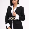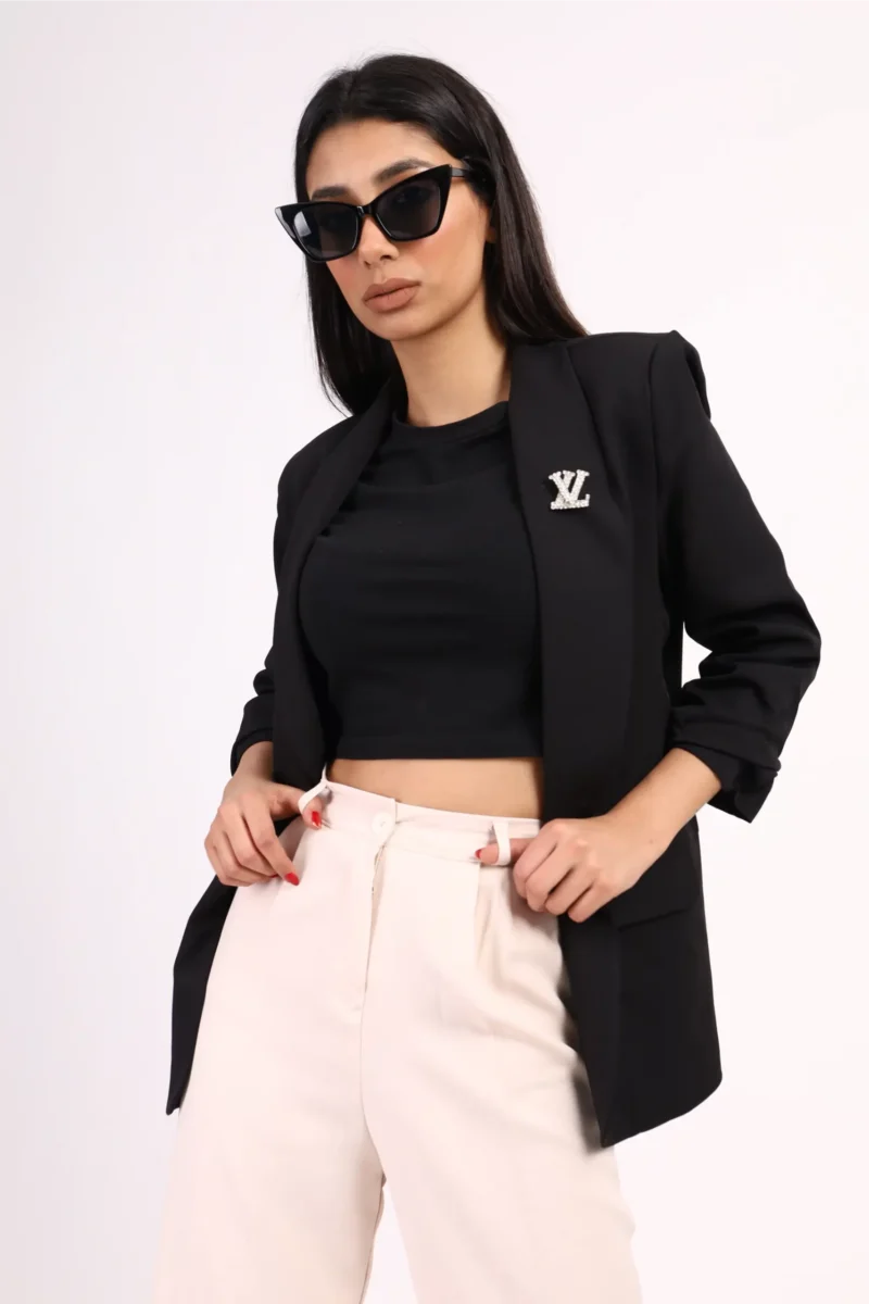 בלייזר שחור קלאסי בגזרה אלגנטית שמתאים לכל שעה של היום- משלבת אותו עם ג'ינס, חצאית או שורט דמוי עור- התוצאה תמיד שיקית.