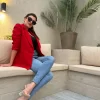 בלייזר קלאסי בצבע אדום עז שמכניס צבע ונוכחות לכל לוק. גזרה מחמיאה, מושלם לשילוב עם ג'ינס להופעה קג'ואל-שק או מעל שמלהה ללוק ערב דרמטי
