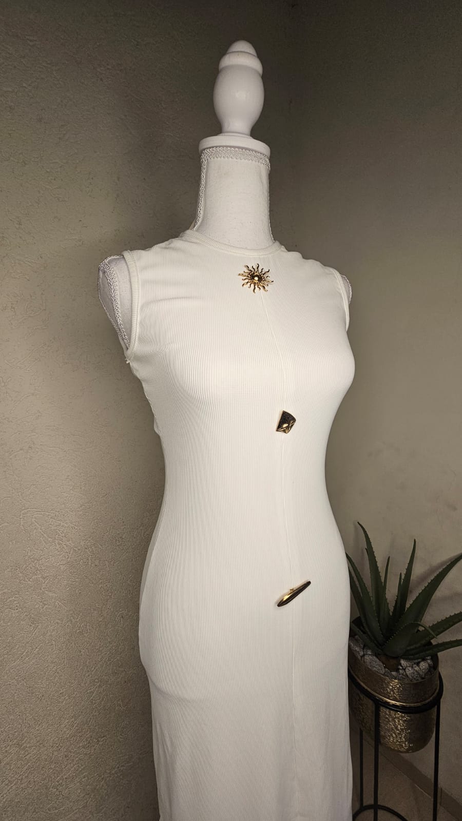 שמלה צמודה בגזרת עיפרון עם עיטרי זהב