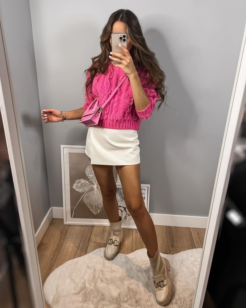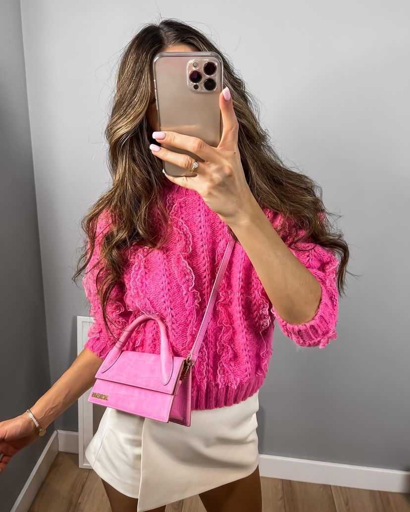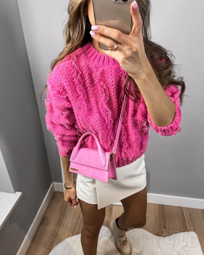 סריג עבה ומחמם בגוון ורוד בולט, עשוי בד סרוג בטקסטורת תחרה מיוחדת שמוסיפה עניין ונוכחות. בגזרה מחמיאה עם שרוולים תלת רבעי ומפתח עגול- פריט מושלם לעונה הקרה למי שרוצה להישאר בסטייל גם כשקר בחוץ. משתלב נהדר עם ג'ינס, חצאית או מכנסי עור ללוק מלא נוכחות.