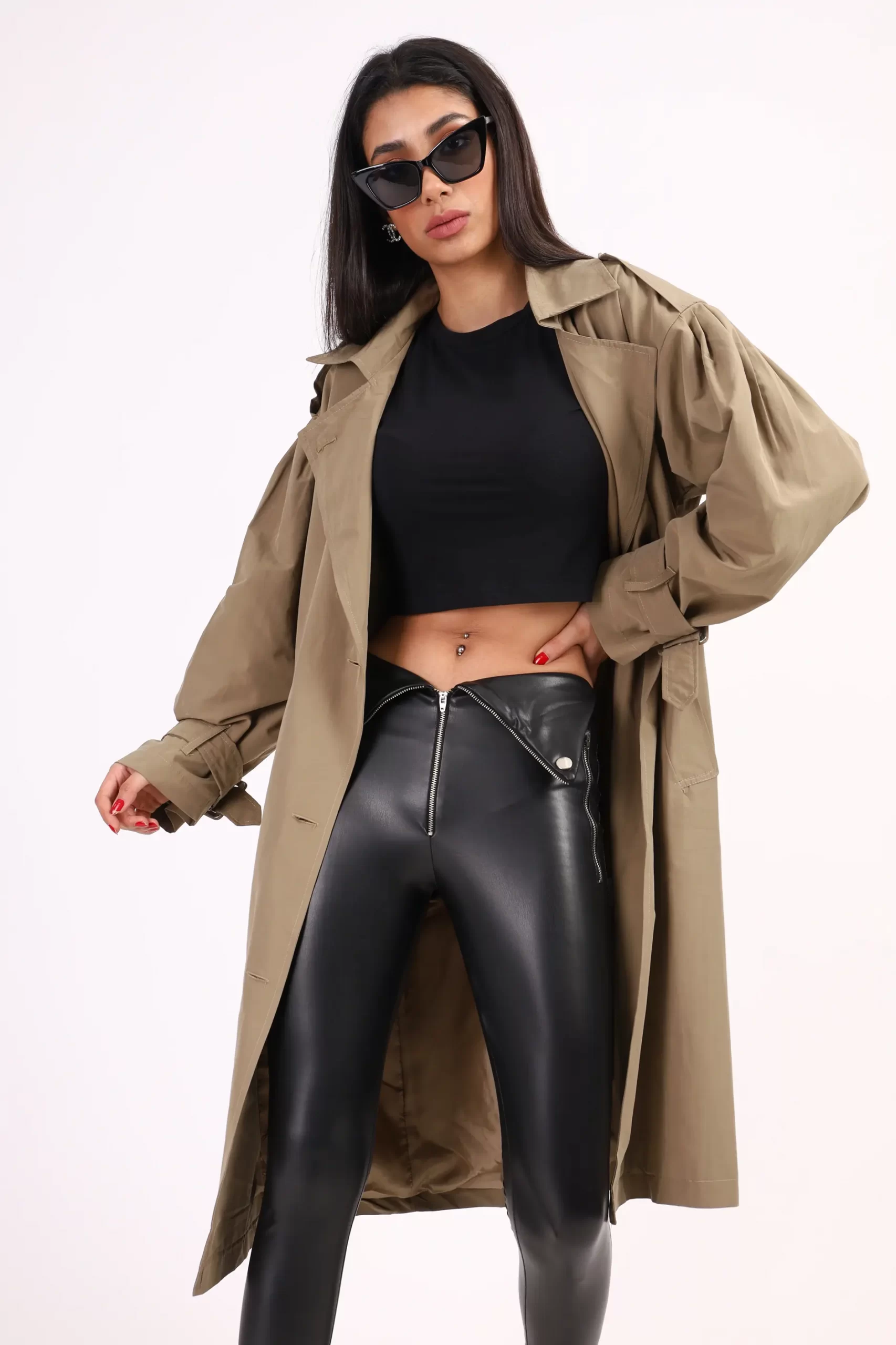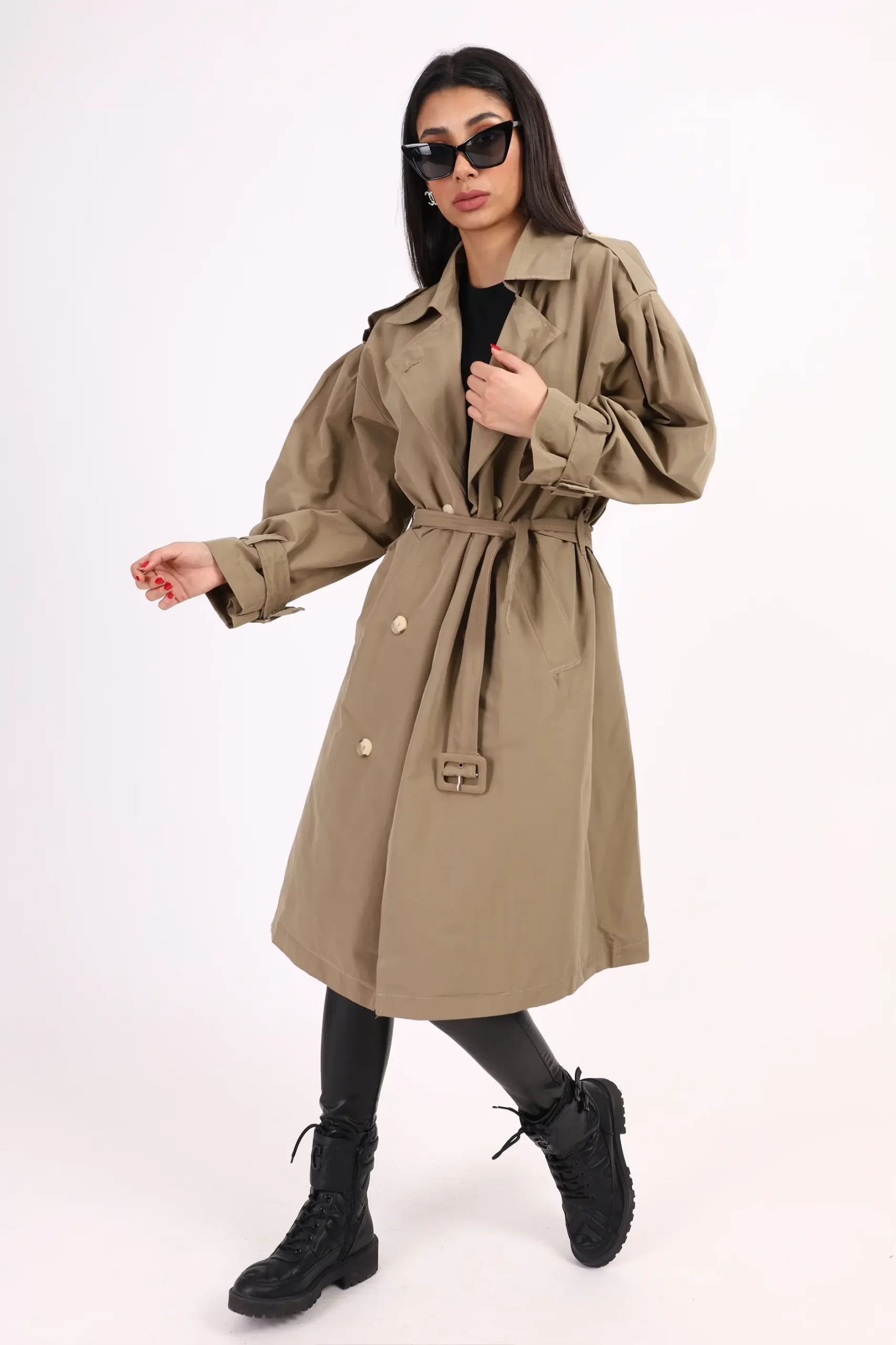 הפריט שיקח את הסטייל שלך כמה צעדים קדימה- טרנץ' בגזרה ארוכה עם חגורה קשירה להדגשת המותן, צווארון מחויט וכיסים צדדיים לנוחות.